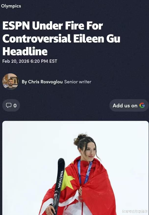 那些不喜欢谷爱凌的美国网友围攻这位体育作家,“ESPN 已经迷失了方向。”有人写道。“这是在替中国洗地?对 ESPN 来说一点不意外。”另一人评论。“她在美国出生长大,父亲是美国人,青少年时期还代表美国参赛,却为了钱选择代表中国。她现在受到的所有严厉批评,完全是理所应当的。”还有人说,