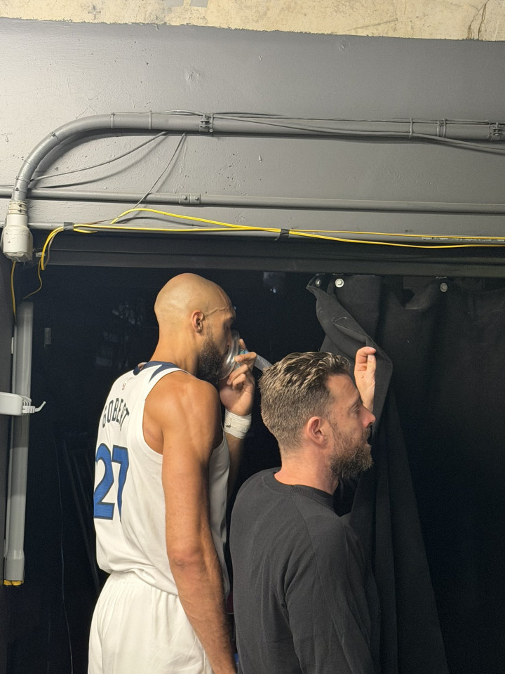比赛还剩3分03秒,森林狼终于撤下兰德尔等主力,最终森林狼输掉G5;此役戈贝尔出战29分钟,2投1中拿到3分7篮板2助攻2抢断,正负值-25,由于高原反应,戈贝尔一度在球员通道中吸氧;兰德尔15中8空砍27分9篮板6助攻。